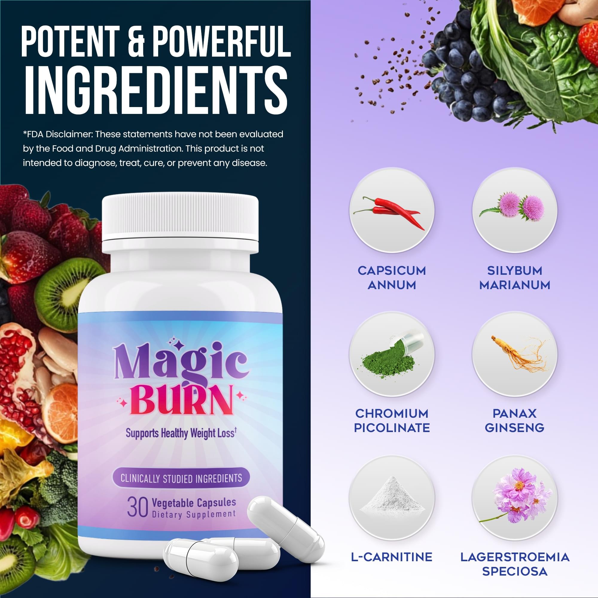 Your body knows how to burn fat but for most people, that switch has been turned off for years. MagicBurn™ flips that switch back on. Inside every capsule is a powerful blend of ingredients that targets the real reason you're struggling to lose weight: a sluggish metabolism and blocked fat-burning window. By combining fat-shredding L-Carnitine, green coffee bean extract, and mood-lifting L-Theanine, MagicBurn™ helps your body torch stubborn belly fat, crush cravings, and feel energized — all day long. Forget restrictive diets. Forget hours at the gym.